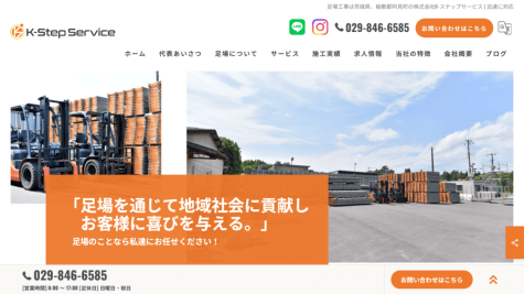 関東一円をサービスエリアとして展開している株式会社K-ステップサービスは、茨城県稲敷郡阿見町を拠点に足場工事を中心とした建設関連業務を手がけている。くさび式足場による住宅工事から商業施設、公共建築物まで現場規模を問わず対応しており、自社保有する足場材の豊富さが急な工事依頼にも即座に応えられる基盤となっている。現場の特性に合わせた提案力と施工開始から撤去まで一貫して担う体制により、各プロジェクトで安定した工期と品質を維持している。