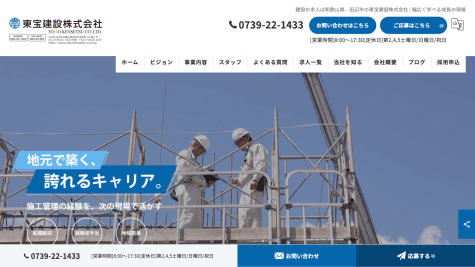 昭和28年の創業から70年にわたり、東宝建設株式会社は和歌山県田辺市で建築業を営んできました。住宅建築から公共建設まで守備範囲は広く、設計段階から完工まで自社で完結する一貫体制を維持しています。図面作成・施工監理・現場管理のすべてを社内スタッフが担当し、外部委託による品質のばらつきや連絡ミスを排除。地元の協力業者とは長年の取引関係があり、急な工期変更や資材調達にも柔軟に対応できる環境が整っています。