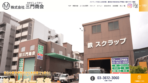東京都墨田区文花に本社と第二工場を構える株式会社三門商会は、昭和27年10月の創業から70年以上の歴史を持つスクラップ回収・金属買取の専門企業だ。鉄・アルミ・ステンレスなどの金属買取を行いながら、工場や解体現場で発生するスクラップの回収・運搬を主軸事業として展開してきた。「長年の誠実な取引により、仕事量が非常に安定している」という言葉が、70年以上の積み重ねを端的に示している。多種多様なトラックを用いた回収体制で、東京23区・埼玉県・千葉県をカバーする。
