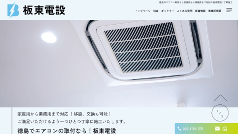 板東電設の施工プロセスは、現地の無料見積もりからスタートする。配管の状態、電源の引き込み位置、室外機の設置スペースなど、現場で初めて分かる要素を確認してから料金と作業内容を提示するため、後から費用が膨らむ展開を防げる。家庭用の標準取付が税込17,000円、取り外しが税込5,000円/台など、主要な作業の目安額がサイトに掲載されているため、問い合わせ前からある程度の感覚が持てる。見積もりから施工、アフターフォローまでの流れが一貫しており、複数の業者をまたぐ手間が生じない。