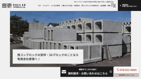 営業時間は平日8:30〜17:00(日・祝定休)。明石駅からバスで約15分、西明石駅から車で約18分という立地に拠点を構えており、電話(078-911-9895)での問い合わせにも対応している。残コン型枠の導入を検討している工場が最初に取るべきアクションとして、まず電話かウェブフォームで相談を入れるという入口を明確にしている点が、利用者の動線として機能している。