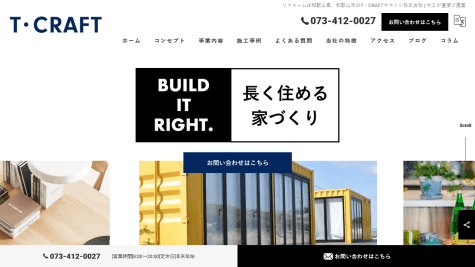 「和歌山で最も歴史のあるリノベーション会社」——T・CRAFTヤマトシ株式会社がそう表現するのは、数多くの現場を経てきた職人集団としての自負からだ。住宅・店舗・コンテナハウスと施工の領域を広げながら、一貫して外注を使わない自社施工にこだわってきた。和歌山市伊太祈曽を拠点に、和歌山県内から南大阪地域まで対応エリアを持ち、出張見積もりにも応じている。
